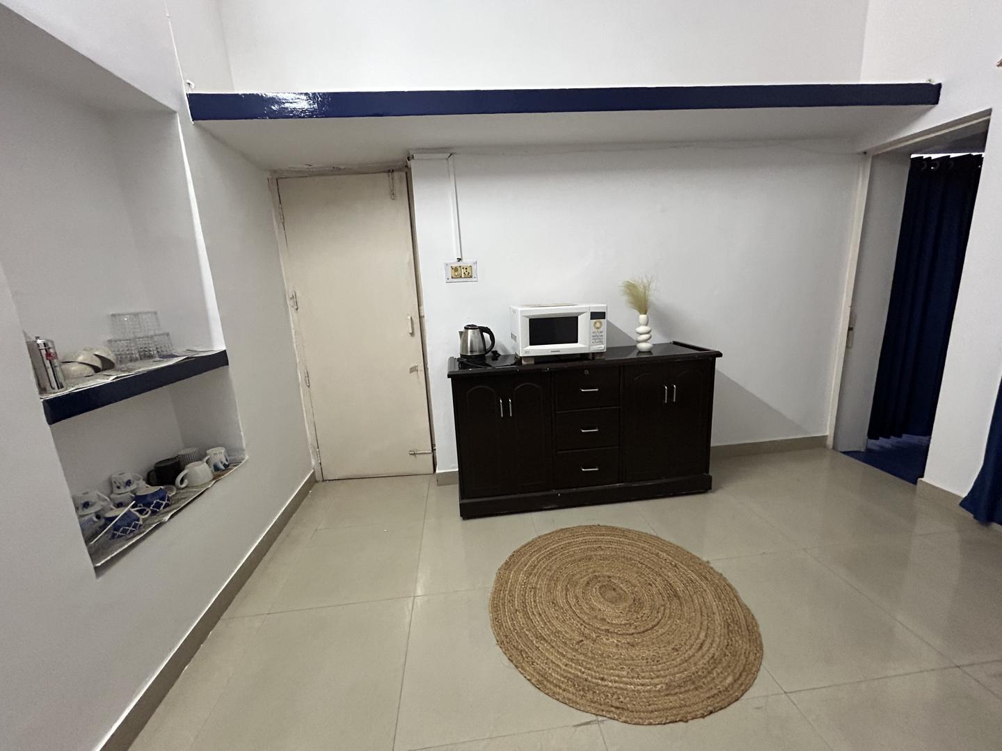 There are 3 bathrooms in the property for the guests to use. Two of them come equipped with a geyser and a shower. All the bathrooms have western seats. The bathrooms offer a spacious and vibrant atmosphere to freshen up. The third bathroom is in the lobby area of the property, the bathroom is private, however, the lobby area and the RO water machine attached to it is also used by our staff.